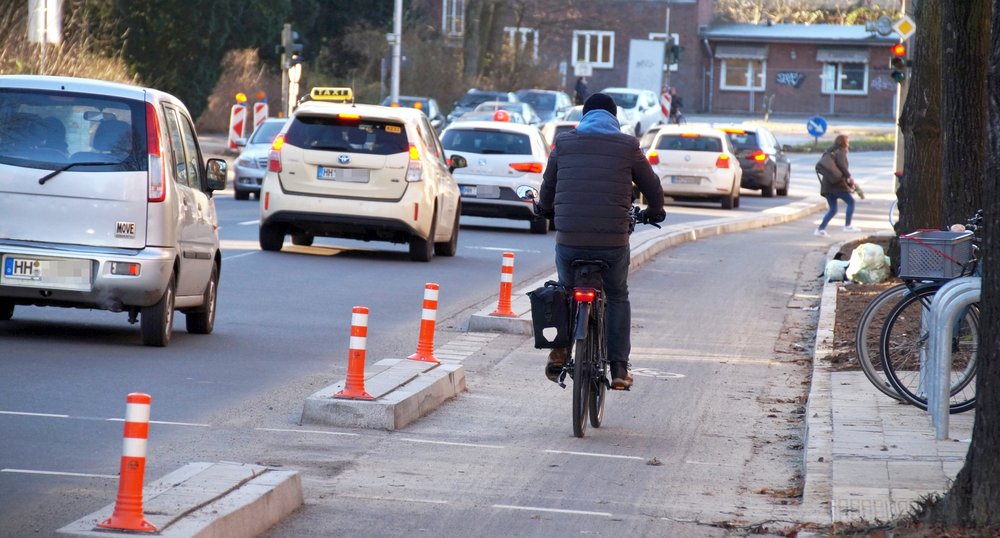 Veloroute 6 auf dem Dulsberg: Bequem und sicher auf der ersten Protected Bike Lane in Hamburg-Nord radeln!