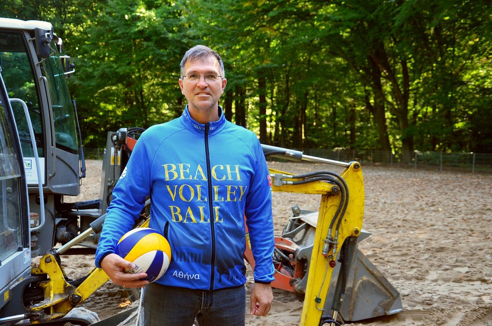 Foto: Oliver Camp auf dem Beachvolleyballfeld im Stadtpark (Reiffert/GRÜNE Fraktion Nord)