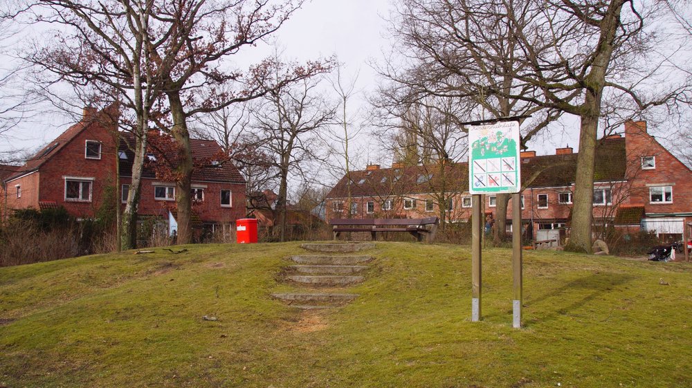 Foto: Inmitten der Wolfgang-Borchert-Siedlung liegt eine Grünfläche, die sich für die Gedenktafel gut eignen würde (Reiffert/GRÜNE Fraktion Nord)