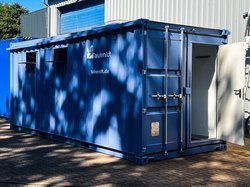 Der zum „Taubenloft“ umgebaute Seecontainer der Firma Elbtainer (Aussenansicht)