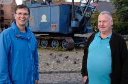 • Foto: Oliver Camp (GRÜNE, li.) und Rüdiger Wendt (SPD, re.) auf dem Museumsplatz Barmbek (Reiffert/GRÜNE Fraktion Hamburg-Nord)