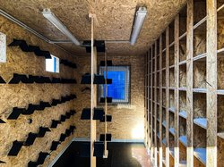Der zum „Taubenloft“ umgebaute Seecontainer der Firma Elbtainer (Innenansicht)