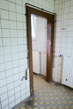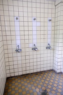 Foto 2+3: Die Duschen im Verbandshaus sind müssen dringend saniert werden. (© Reiffert/GRÜNE Hamburg-Nord)