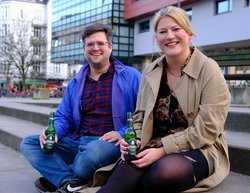 Foto: Timo B. Kranz und Lena Otto können sich gemeinsames EM-Schauen auf dem Marie-Jonas Platz in Eppendorf gut vorstellen (Reiffert/GRÜNE Fraktion Nord)