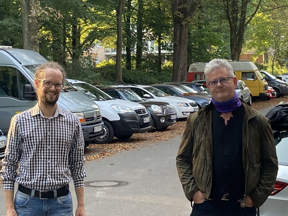 Foto Thorsten Schmidt (GRÜNE, links) und Thomas Domres (SPD, rechts) in einer typischen Eppendorfer Straße am UKE