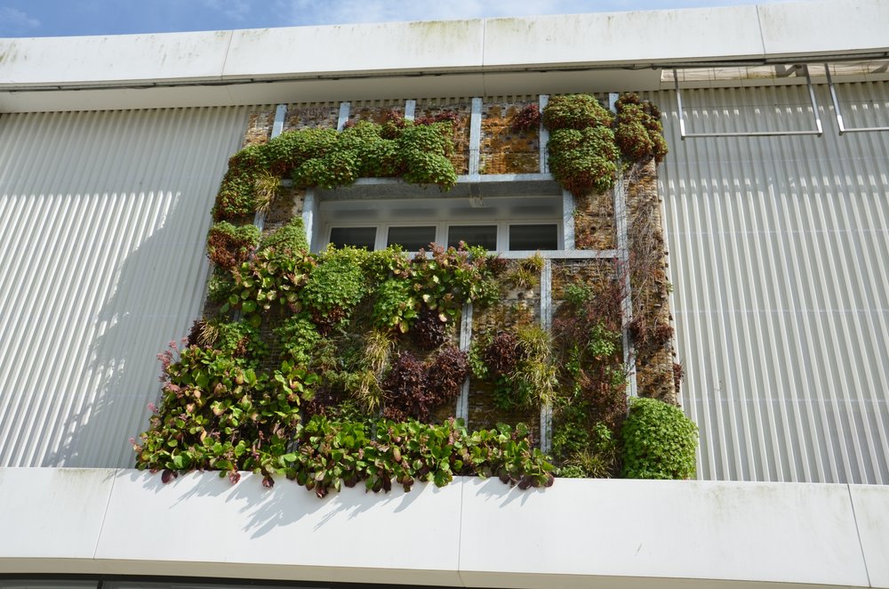 Foto: Fassadengrün an der Sporthalle im Inselpark (Reiffert/GRÜNE Fraktion Nord)
