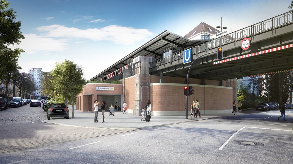 Der historische U-Bahnhof Sierichstraße (Baujahr 1912) erhält zwei neue Eingänge an der Dorotheenstraße, einen Aufzug sowie eine neue Schalterhalle inklusive Verkaufsfläche.