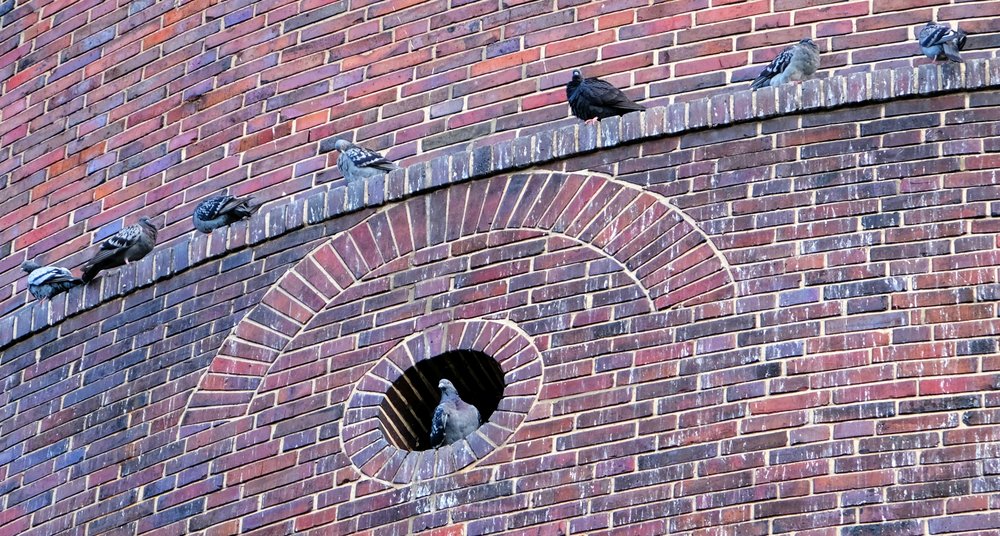 3. Stadttauben am Rundbunker vor dem Bahnhof Barmbek (Reiffert/GRÜNE Fraktion Hamburg-Nord)