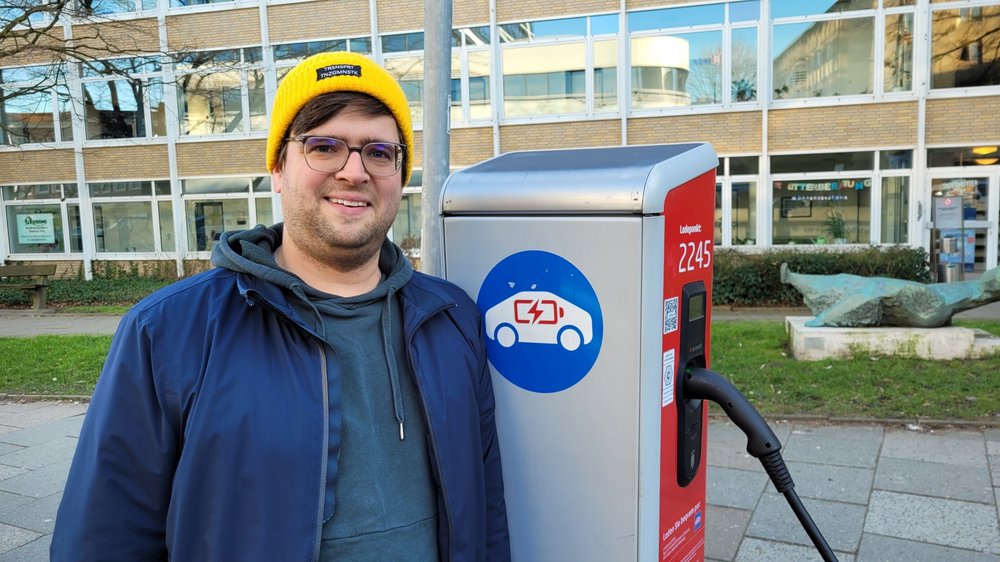 • Foto: Timo B. Kranz an einer E-Ladesäule (Reiffert/GRÜNE Fraktion)
