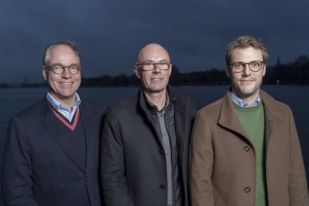 Foto: (v.l.n.r): Tobias König, 1. Vorsitzender Norddeutscher Regatta Verein (NRV), Michael Werner-Boelz, GRÜNER Fraktionsvorsitzender, Alexander Kleinow, SPD-Fraktionsvorsitzender, auf dem Steg des NV an der Alster (GRÜNE Fraktion Nord)