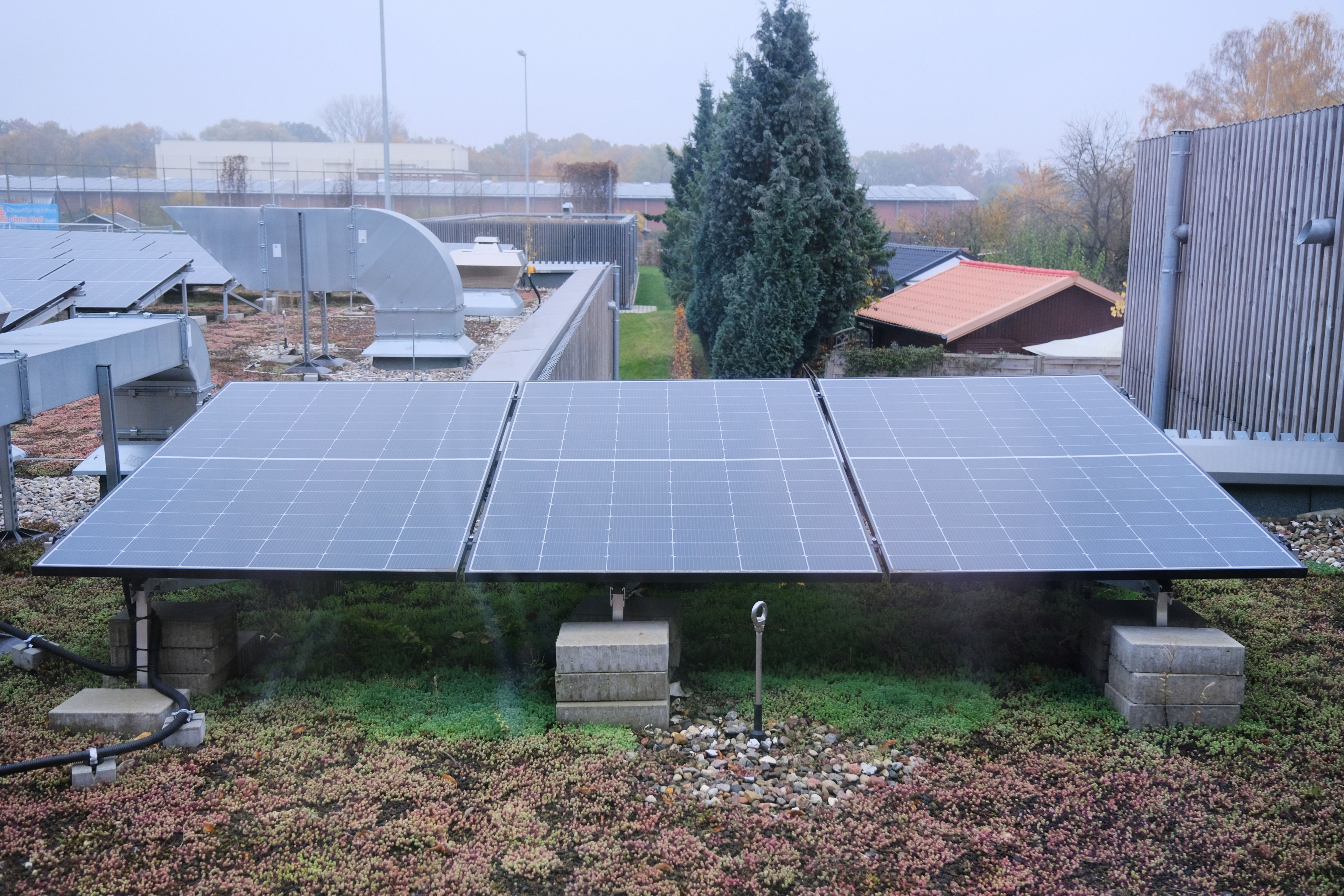 Foto: Bereits vorhandene Photovoltaik-Anlage auf dem Dach des SC Urania – die neue Anlage wird diese ergänzen (Reiffert/GRÜNE Fraktion)