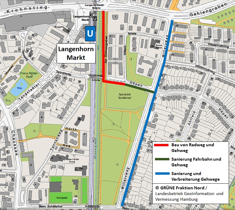Karte: Baustrecke und Maßnahmen (GRÜNE Fraktion Nord)