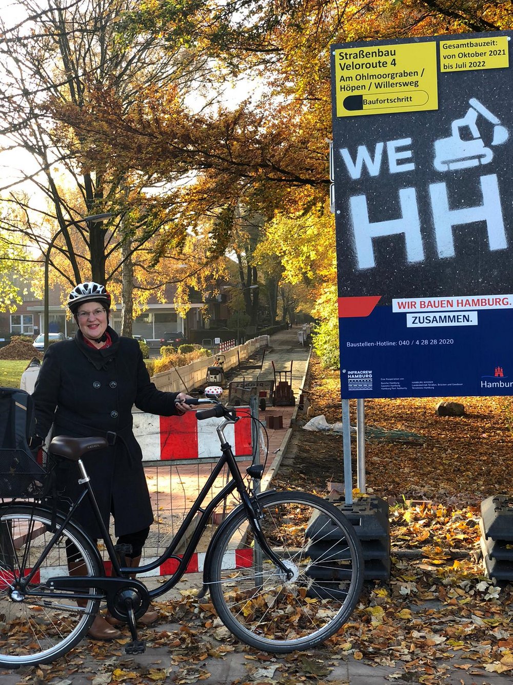 Mit dem Baustart am Streckenabschnitt Höpen/Am Ohlmoorgraben/Willersweg wird jetzt eine der letzten Lücken auf der Veloroute 4 zwischen Rathausmarkt und Langenhorn geschlossen. Die Strecke soll bis Juli 2022 fertiggestellt werden.