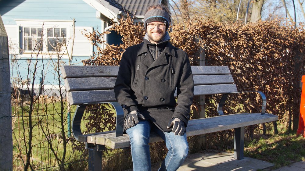 Foto: Thorsten Schmidt (GRÜNE) auf einer Sitzbank (Reiffert/GRÜNE Fraktion)