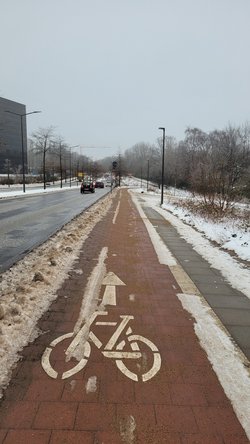 • Foto: Radweg an der Sengelmannstraße nach dem Einsatz des Winterdienstes (©Reiffert/GRÜNE Fraktion Nord)