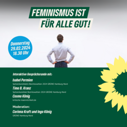 Wir GRÜNEN positionieren uns klar als eine feministische Partei, die sich für Vielfalt und Gleichberechtigung einsetzt. Während feministische Veranstaltungen oft überwiegend von Frauen* besucht werden, betonen wir die Bedeutung einer inklusiven Teilnahme aller Geschlechter.