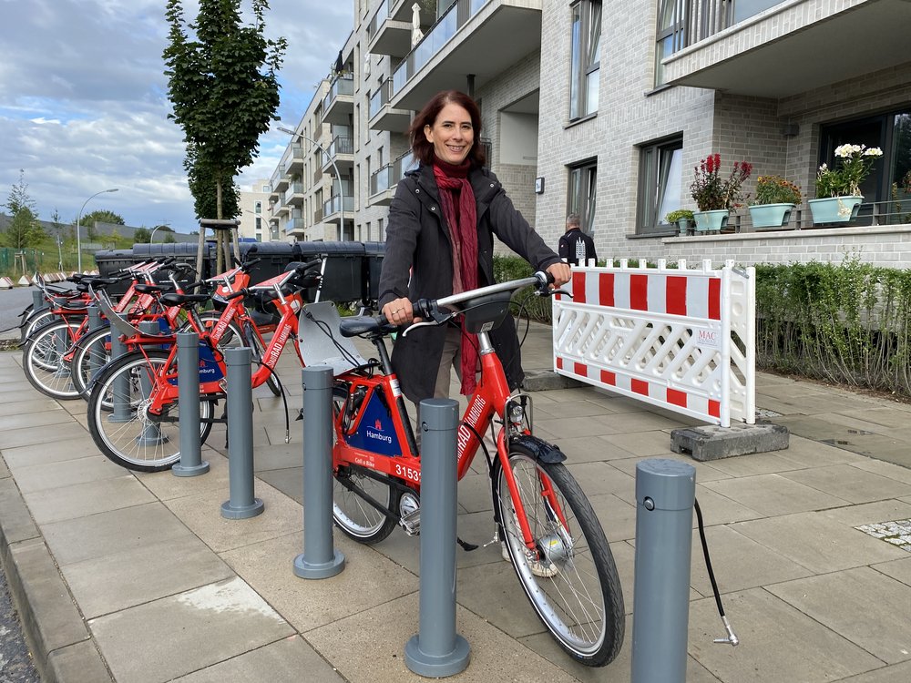 Foto: Katrin Hofmann an der StadtRad-Station Gerd-Marcus-Straße/Anni-Gliessmann-Weg (Damm/GRÜNE Fraktion Nord)