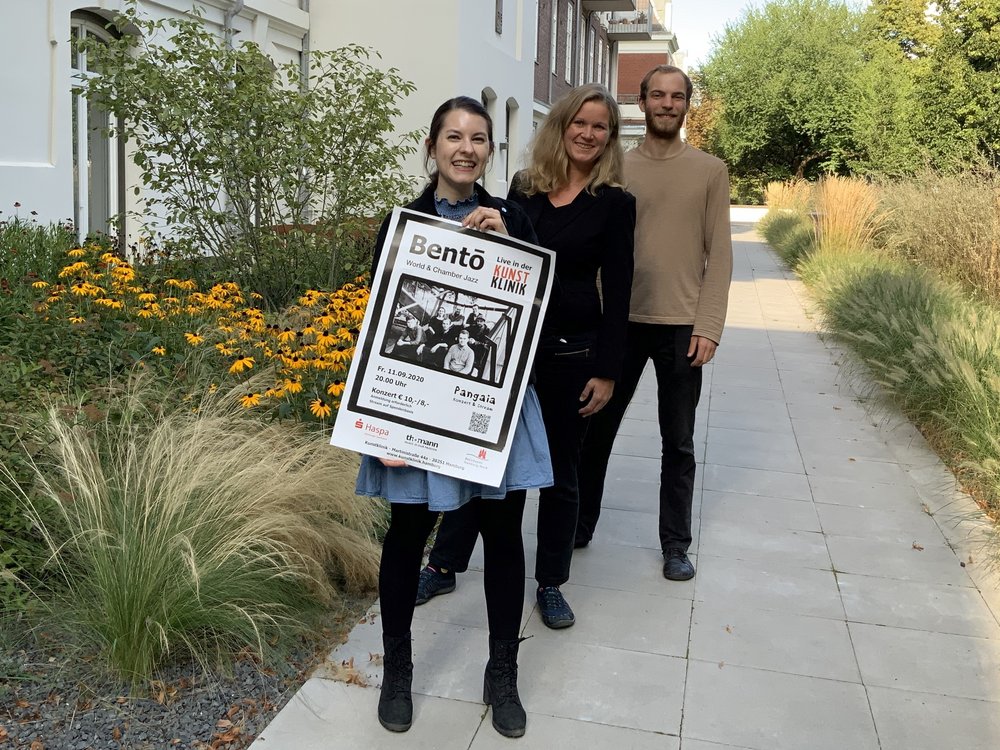 Bild: vlnr. Angelina Platz (GRÜNE), Rika Tjakea (Kunstklinik – Kulturzentrum Eppendorf) und Patrick Huss (Moderator und Mitorganisator der Konzerte) (Foto: Isabel Permien)