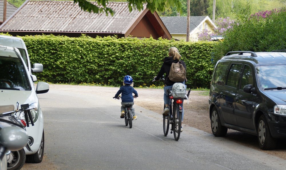 Im Wiesenstieg sind viele Eltern mit ihren Kindern unterwegs – mit dem Rad oder auch zu Fuß.