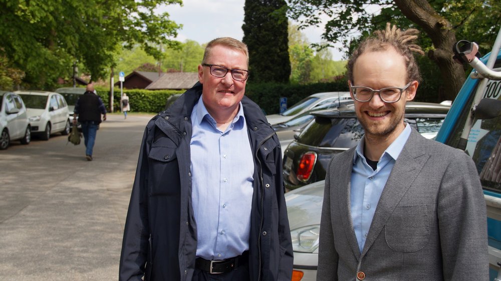 Mike Blank (SPD, l.) und Thorsten Schmidt (GRÜNE, r.) am Wiesenstieg.