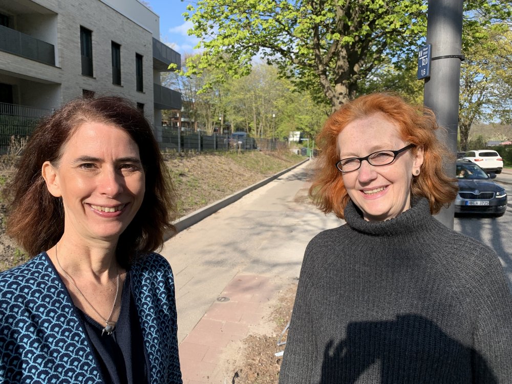 Foto: Katrin Hofmann (GRÜNE, li.) und Karin Ros (SPD, re.) am neu zu planenden Abschnitt des Maienweges (Foto: Schmidt)