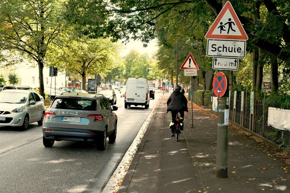 Foto: Die Borsteler Chaussee vor der KiTa St. Peter (Reiffert/GRÜNE Fraktion Nord)